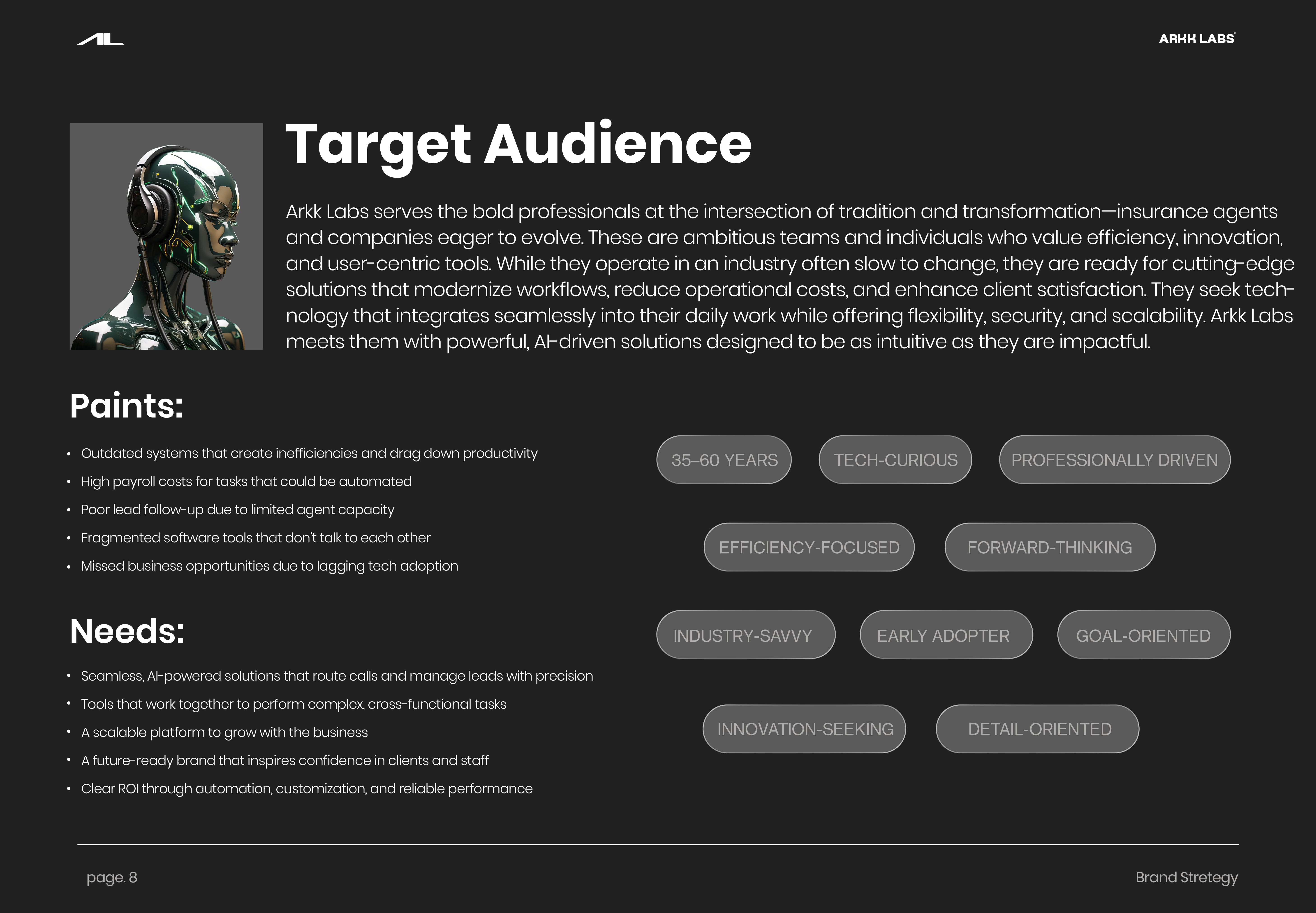 Arkk Labs is a future-focused technology company building scalable Al solutions tailored for the insurance industry. Co-founded by Chris Rocha, a hands-on technical visionary, and Garret Mitchell, a leader in sales, marketing, and implementation, Arkk Labs merges deep technical expertise with real world execution. We design intelligent systems-from Al receptionists that streamline inbound calls to outbound agents that follow up on leads-empowering insurance professionals to operate smarter, faster, and leaner. Our in-house development and rigorous partnerled testing ensure every tool we launch is feature-rich, secure, and interconnected. With a roadmap of transfo®️native Al products and a vision to scale and exit within five years, we're not just adapting to the future-we're building it. Arkk Labs is where innovation meets pre-cision, and disruption becomes design.